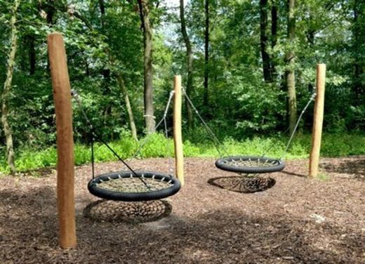 Columpio modelo NIDO DOBLE D-100 1.07.01.01. que dispone de 2 asientos con forma de nido, con una capacidad total para 8 usuarios. Columpio muy resistente y decorativo, tallado a mano y fabricado con madera de robinia. Este columpio cumple con las normas europeas EN 1176 por el TÜV alemán - Product Service.