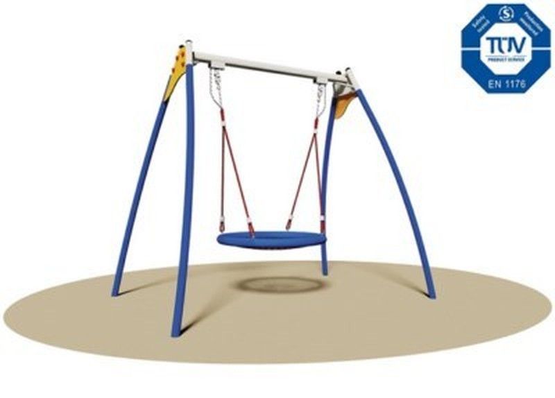 Columpio de acero MASHA - 974 con asiento cuna que dispone de una capacidad para 5 niños. Columpio certificado de conformidad con las normas europeas EN 1176 por el TÜV alemán - Product Service.
