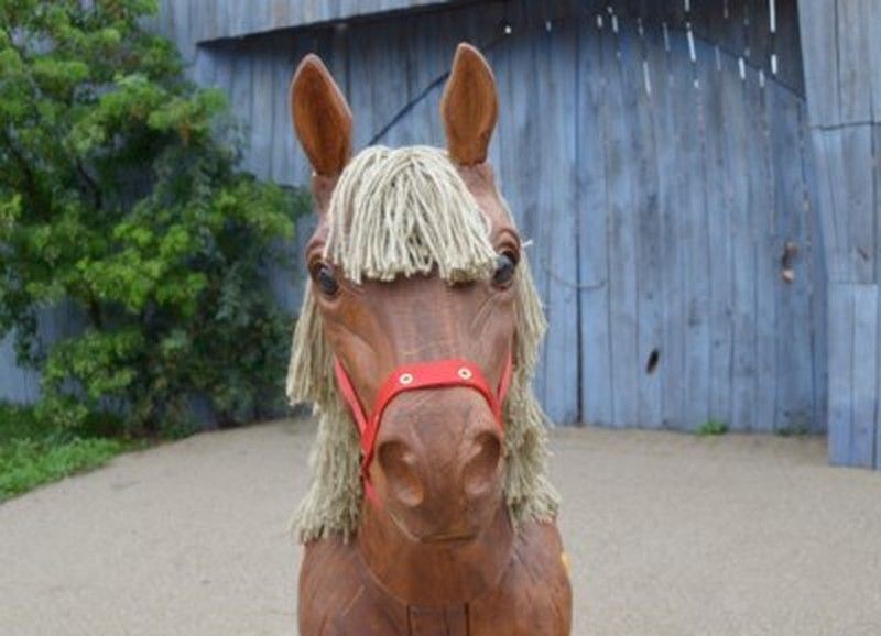 Figura con forma de caballo gigante, modelo 33.08., tallado a mano y fabricado con madera de robinia. Esta figura cumple con las normas europeas EN 1176 por el TÜV alemán - Product Service.