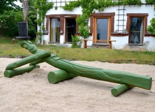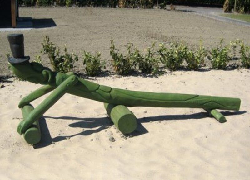 Figura con forma de Saltamontes, modelo 23.03.02., tallado a mano y fabricado con madera de robinia. Esta figura cumple con las normas europeas EN 1176 por el TÜV alemán - Product Service.