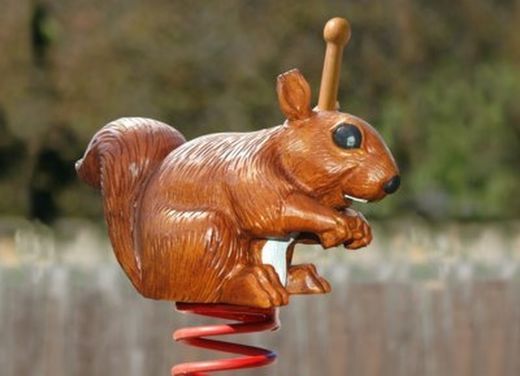 Juego de muelle con forma de Ardilla, modelo 4.03.07, tallada a mano y fabricada con madera de robinia con un muelle de acero barnizado al horno con dispositivo antipinzamiento de dedos. Este juego de muelle cumple con las normas europeas EN 1176 por el TÜV alemán - Product Service.