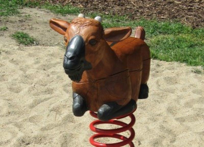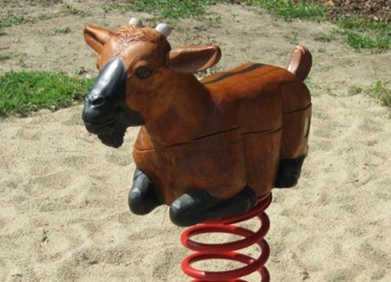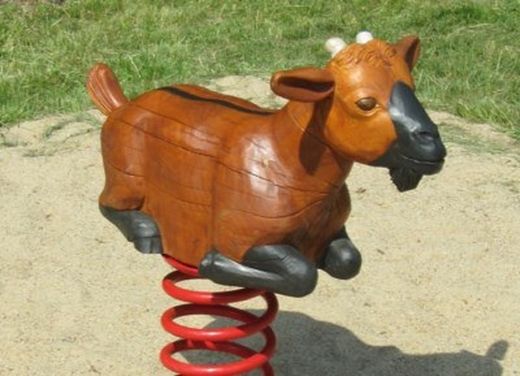 Juego de muelle con forma de Cabra, modelo 4.03.16, tallada a mano y fabricada con madera de robinia con un muelle de acero barnizado al horno con dispositivo antipinzamiento de dedos. Este juego de muelle cumple con las normas europeas EN 1176 por el TÜV alemán - Product Service.