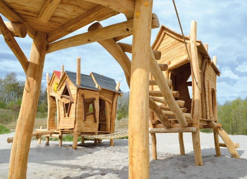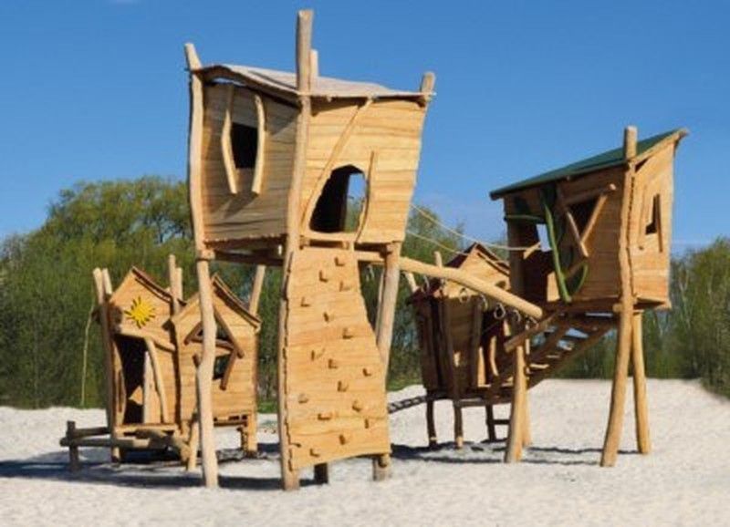 Juego infantil de madera de Robinia Castillo FAMILIAR 18.10., tallado a mano y fabricado con madera de robinia. Este castillo de robinia cumple con las normas europeas EN 1176 por el TÜV alemán - Product Service.