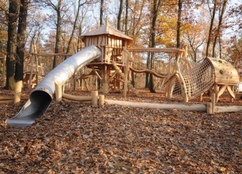 Juego infantil de madera de Robinia Castillo GRETHEN 10.16., tallado a mano y fabricado con madera de robinia. Este castillo de robinia cumple con las normas europeas EN 1176 por el TÜV alemán - Product Service.