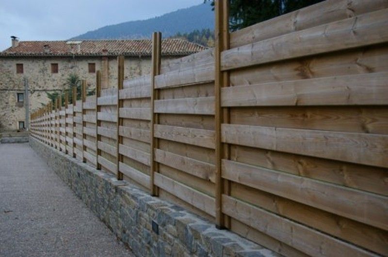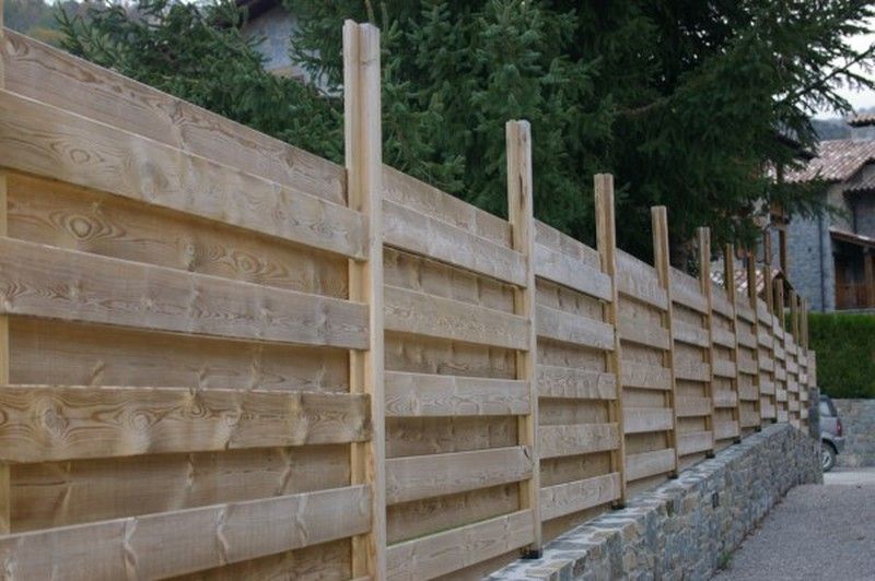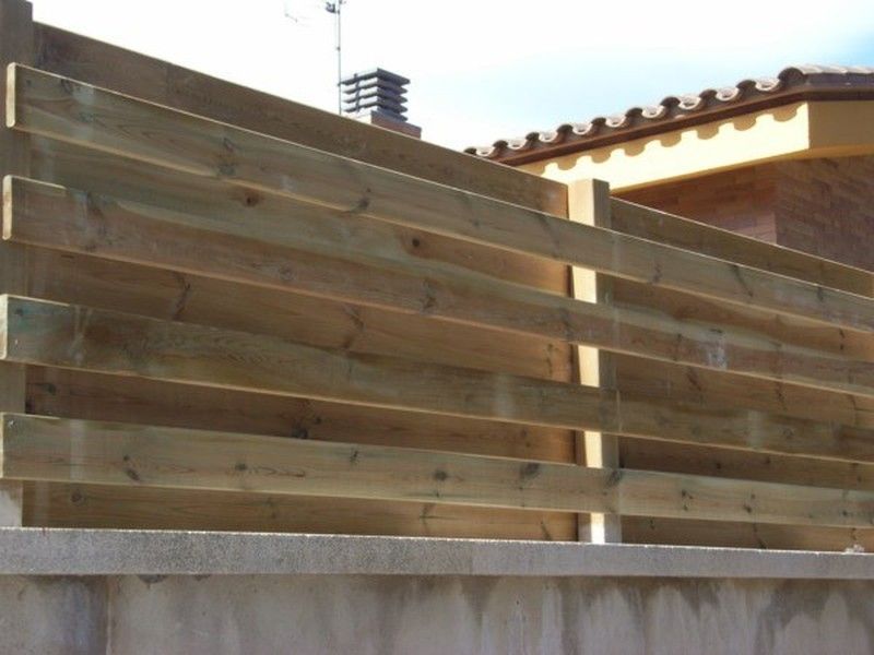 vallas de perfiles en madera de pino tratada al autoclave, para ponerlos horizontales a dos caras fijación mediante tornillería. Existen distintas dimensiones de perfiles para realizar múltiples tareas: Cercados, vallas, ocultaciones, casetas, tarimas... totalmente transpirables o opacas con una gran resistencia a las inclemencias climáticas. valla de listones muy discreta.