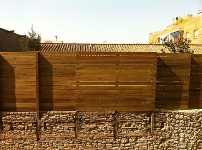 Vallas de Perfiles en madera de pino tratada al autoclave, para ponerlos horizontales a una cara fijación mediante tornillería. Existen distintas dimensiones de perfiles para realizar múltiples tareas: Cercados, vallas, ocultaciones, casetas, tarimas... totalmente transpirables o opacas con una gran resistencia a las inclemencias climáticas. valla de listones muy discreta.