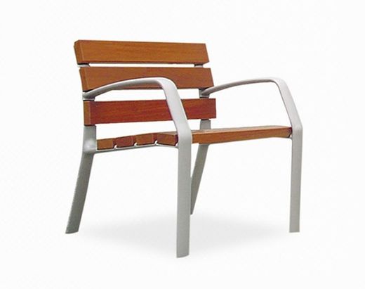 Silla fabricada en madera tropical de buena calidad, Tratada y barnizada con lasur a poro abierto. Con pies de aluminio anodizado AG3, para una sola personas, Gracias al tratado de la madera, esta silla puede resistir a la intemperie sin ningún tipo de mantenimiento.