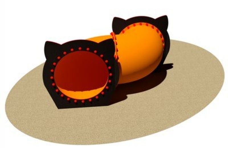 - Estructura: Compuesto por 2 túneles curvados unidos entre ellos que incorporan dos paneles decorativos redondos como punto de entrada y salida.