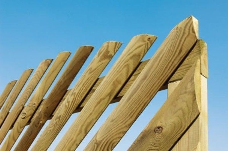 Valla de jardín Cleveland, fabricada en madera de pino. Cepillada y tratada al autoclave, con varios modelos a elegir: inclinado a la derecha o izquierda. Ideal para vallar jardines o piscinas. Gracias al tratado de la madera, esta valla puede resistir a la intemperie sin ningún tipo de mantenimiento. Garantizado 10 años en contacto al suelo y 15 años sin contacto con el suelo.